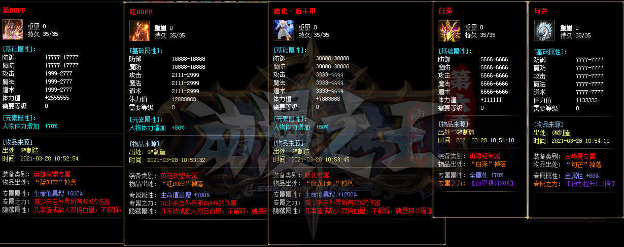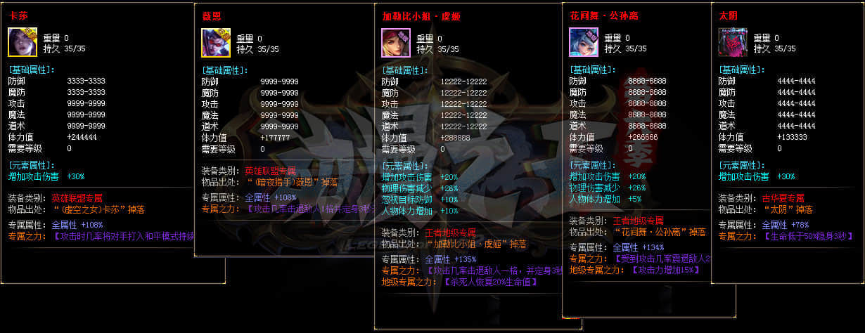 本服套装70套 散件专属3000多套 各种神装眼花缭乱 长期探索